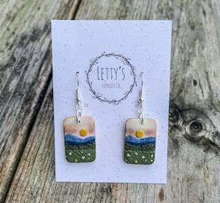 Iconic Vermont scene of Camel's Hump based off a photo by the amazing JVO Photography, in central Vermont. The earrings are made up entirely of polymer clay and pastels. Varying textures and colors really make the landscape pop! Stainless steel metal hooks that are available in silver or gold plated finish these pieces of art off.