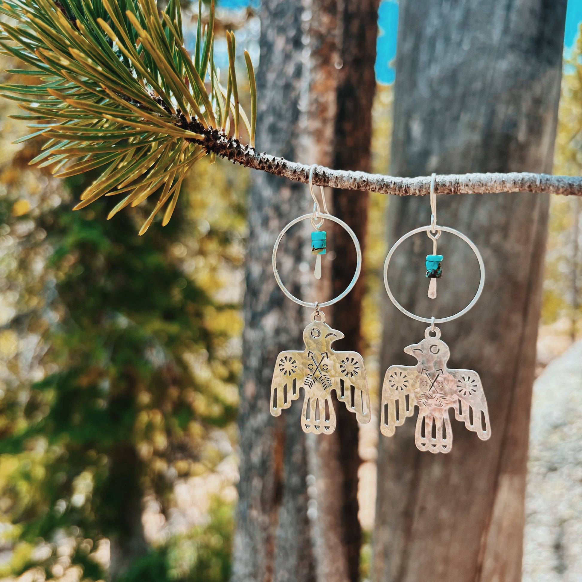 gold hoops with bird pendants and Turquoise Heishi beads that hang from 14 karat gold filled ear wire. Approximate Measurements: * 30 mm wide * 70 mm long