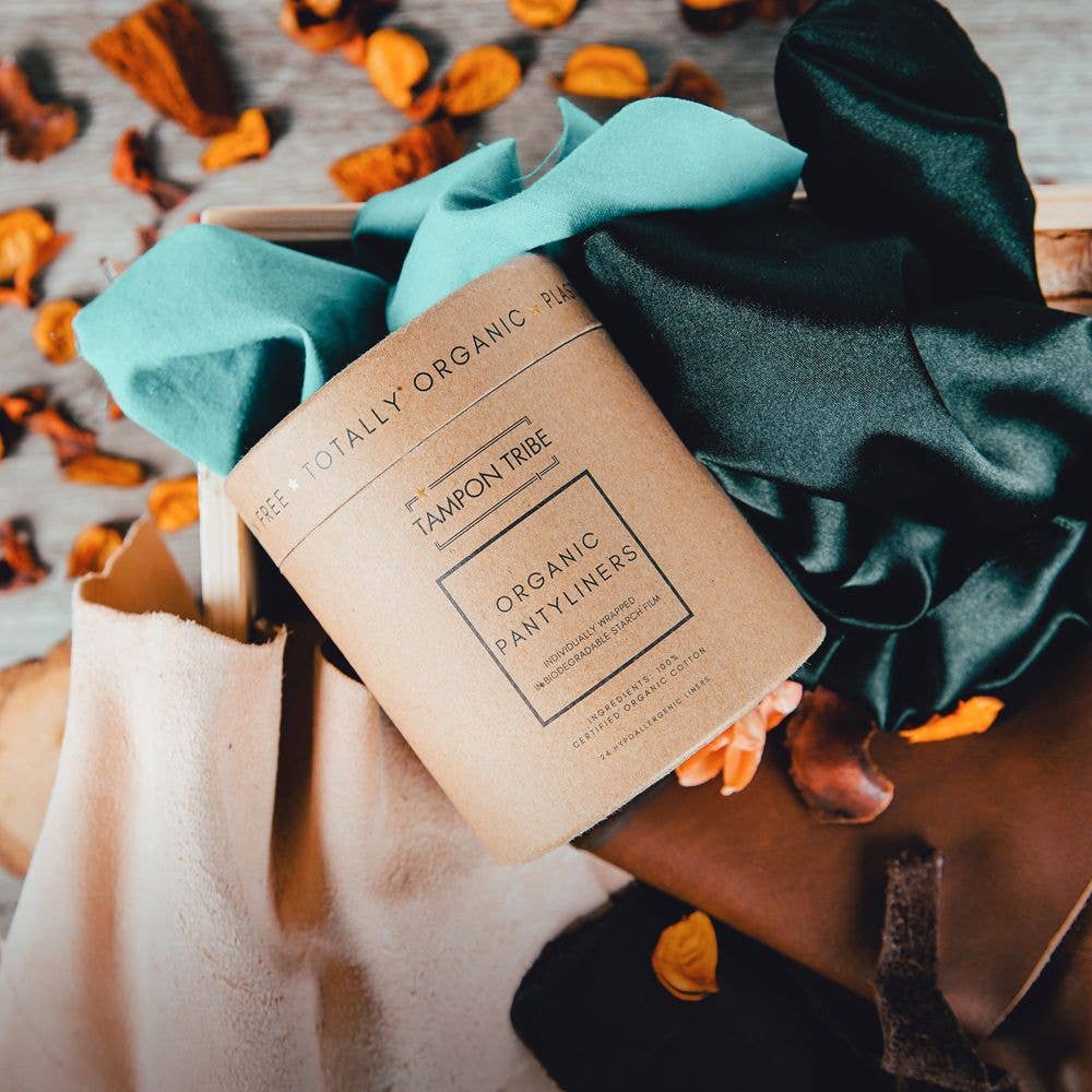 Certified organic cotton pantyliners, no toxins or chlorine bleaches. 100%-plastic free. Hypoallergenic.